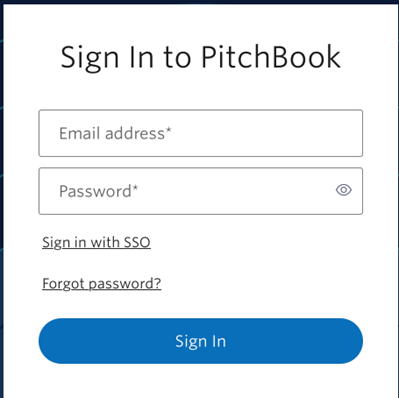 If you forget your password and need to reset it in PitchBook, follow the steps below. If you need to create a PitchBook account, see this blog: Creating a New PitchBook Account.