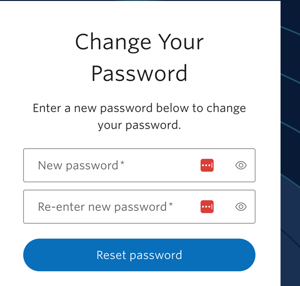 You will see the screen below. Enter your new password in both fields and click “Reset password”.