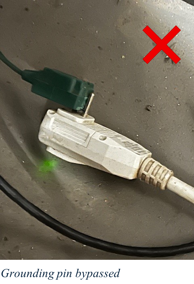 Avoid using 2-prong to 3-prong adapters. A plug adapter that is grounded will not provide protection against an ungrounded electrical box or a faulty appliance, possibly creating an electrocution or shock hazard.