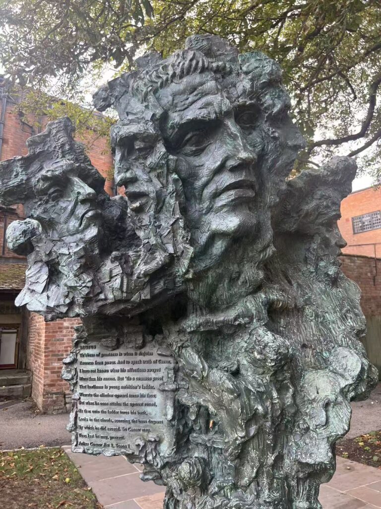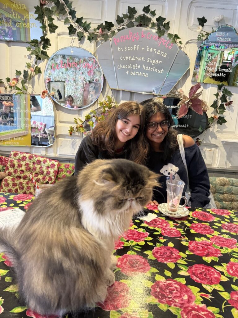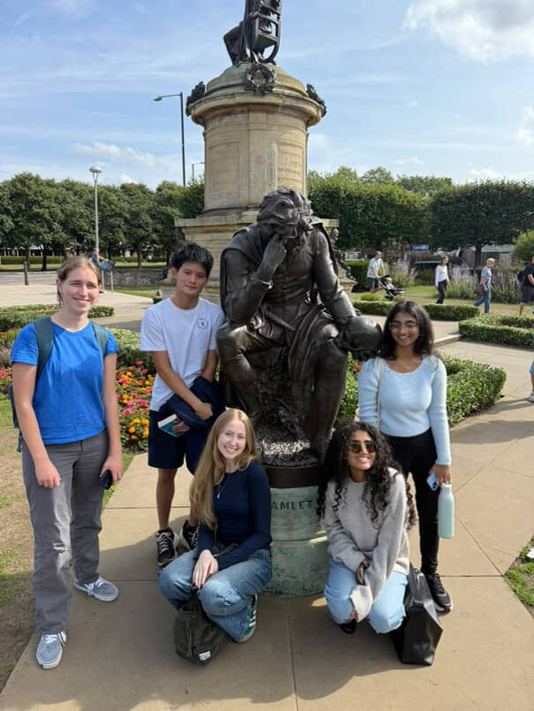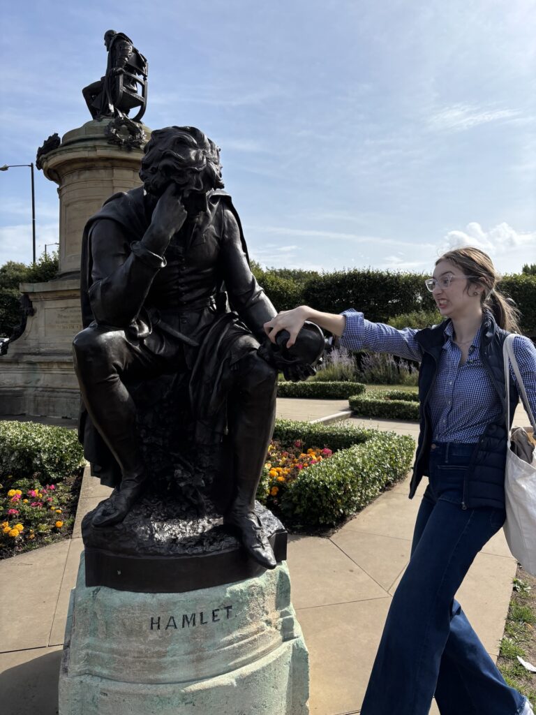 You wandered Stratford’s streets like literary archaeologists, each discovery sharpening your understanding of how the past lives alongside the present. Victoria noticed light filtering through the town’s trees while talking with locals about their daily lives. Lizzy found, yes, 154 references to Shakespeare and won the free laundry contest! You all discovered gardens and statues and visited Shakespeare’s first home, his school, and the church where he was christened and buried. Claire loved “the ‘to share or not to share’ neon sign” and expected “Stratford to be a kind of Shakespeare theme park” but instead discovered that “the town has also clearly not stayed in Shakespeare’s time” with its “own identity outside of being the place Shakespeare lived, with a busy town square and park, many restaurants and businesses, and people playing live music on street corners.” Erin found tenderness even in “the cat cafe where cats have Shakespeare’s names.” Rohan found himself fascinated by “the mix between the historic and the new Stratford,” noting how he’d “never seen another town embrace a famous resident’s legacy quite the way Stratford did for Shakespeare.” You learned to read the town itself as text—not a museum frozen in amber, but a living community that honors its literary inheritance while continuing to write its own story.