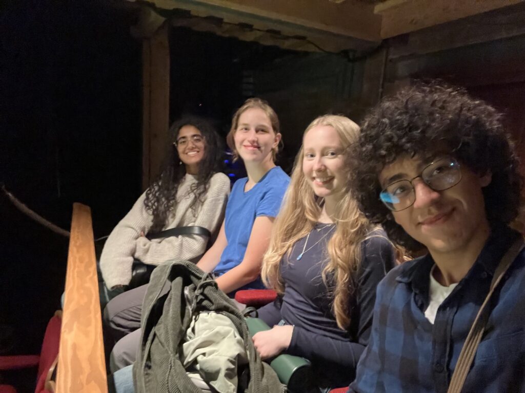 Your eyes found healing everywhere. Claire recognized how Stratford demonstrates healthy inheritance versus haunting demands. Aanya saw how the play “contradicts the image of literature involving a eurocentric lens.” Shreya understood revenge as “feedback loop” and envisioned taking “a knife through that loop.” Chloe spotted Ijames’s remarkable freedom in adaptation. Tommy and Jonathan, nearly baking in the back of the coach, demonstrated exactly what the play teaches when they spoke up not just for their own comfort but for everyone’s—showing how using your voice becomes an act of care for the whole community.
