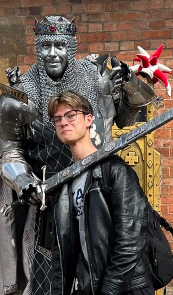 Nic, at one point I was scanning the town for students, and suddenly you sailed past on your skateboard, wheels spinning against ancient stones, and I saw how you’d grasped from Fat Ham that “the key to breaking a tragic cycle is to talk things through.” Your freedom on those streets mirrored exactly what you witnessed on stage—someone choosing movement over stasis, conversation over violence. Andres, you understood how “the ghost haunts Juicy rather than inspires him,” recognizing this creates “a healthier approach” where families work through their issues rather than repeating cycles of violence. I felt that same inspiration when you, Alicia, Casey, Dr. Palomino and I peered into the ancient tombstones as we approached Trinity Church in awe.